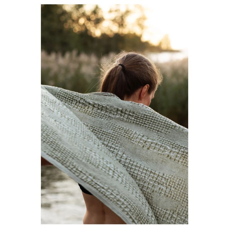KUOHU-jättipyyhkeen ominaisuudet tekevät siitä myös ihanan torkkupeiton kesäisiin riippumatossa löhöilyihin ja tuo pehmeyttä sisustukseen!