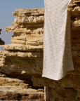 Pellavapyyhe on ihanan kevyt kantaa mukana. Se ei vie tilaa, mutta toimii silti täydellisesti suurena, suojaavana ja kuivattavana kankaana.